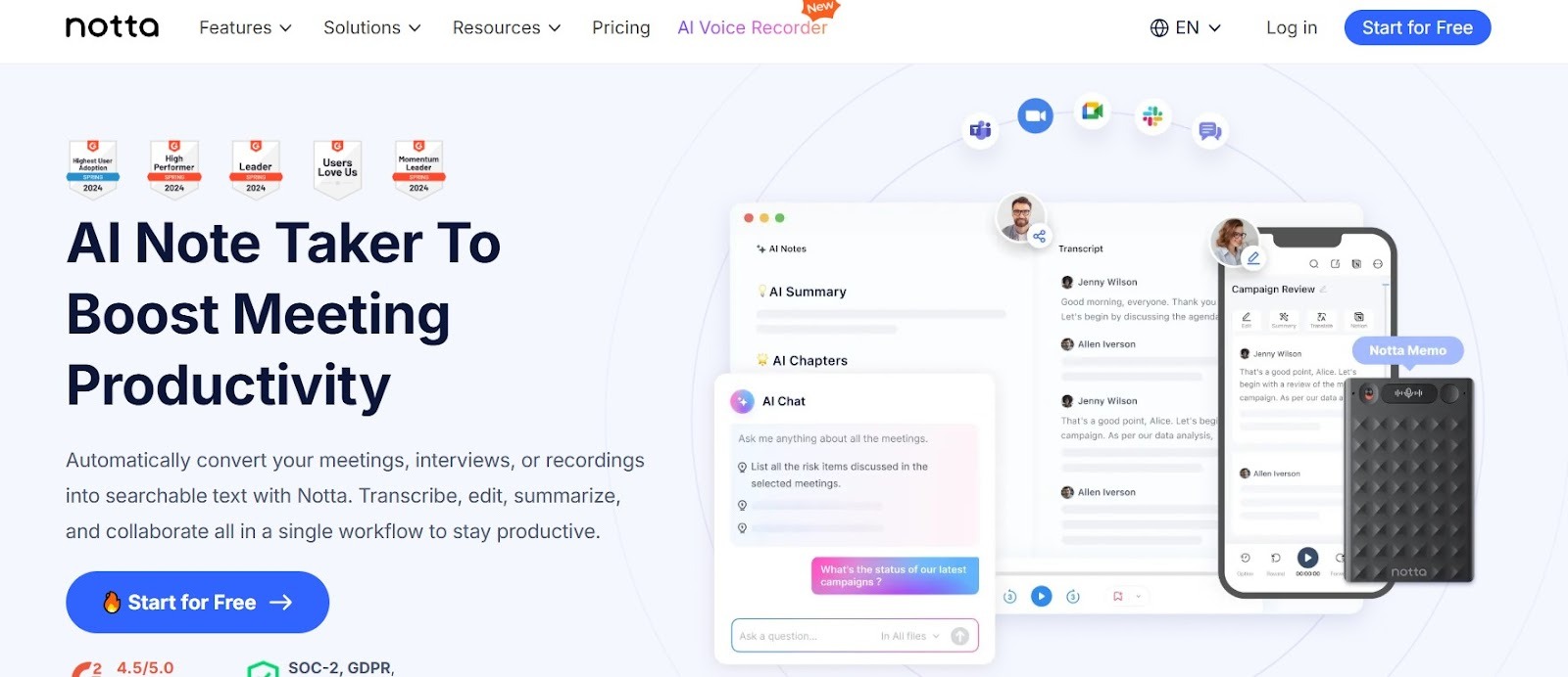 Notta earns its place among some of the top AI-powered transcription tools for 2026 by making speech-to-text simple and accessible. It works well for everything from quick voice memos to longer meetings and video recordings, so teams can capture spoken content without extra effort.