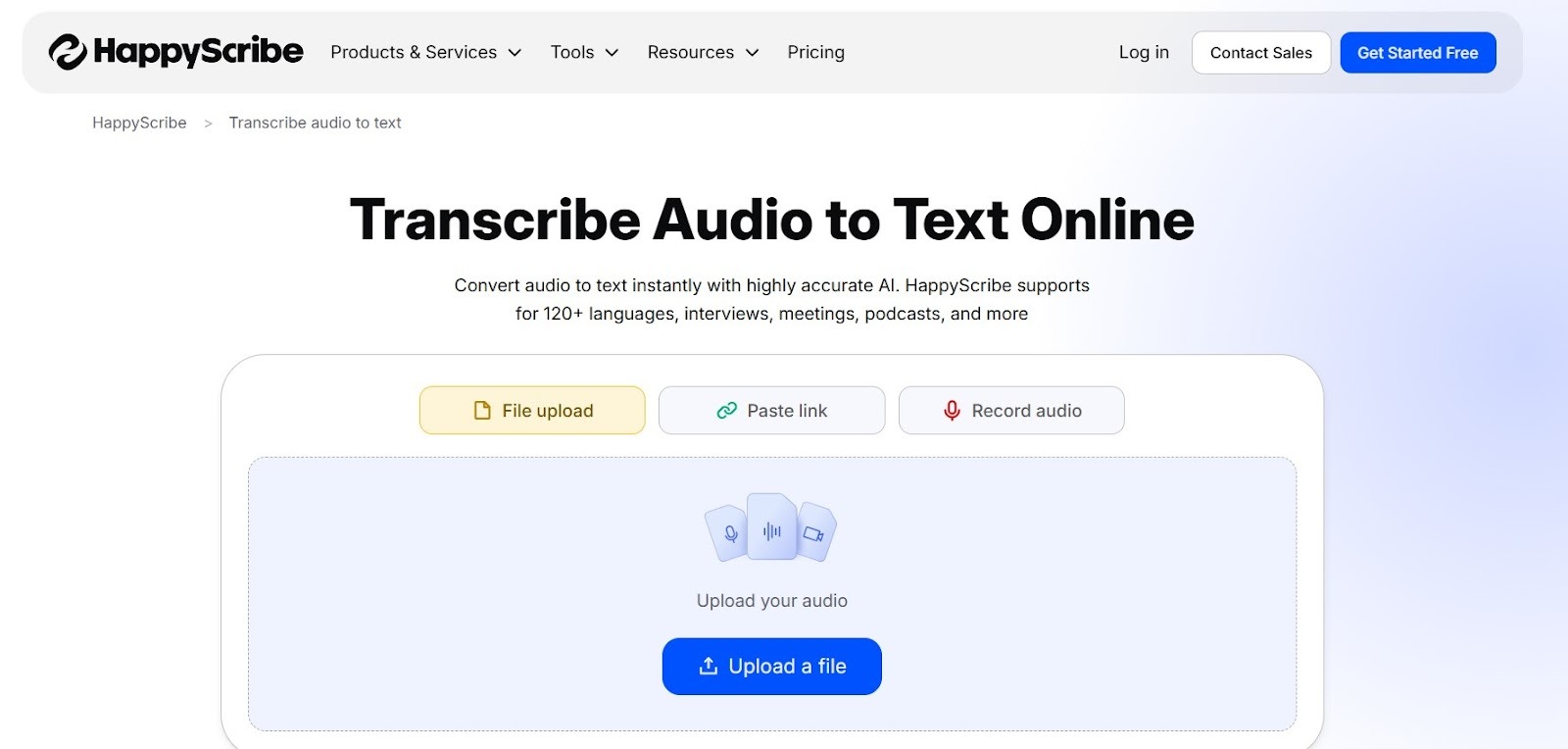 Happy Scribe is a transcription tool that makes it possible to turn audio to text fast and simple. You can choose between automated transcripts for speed or human-reviewed ones for higher accuracy, depending on what you need.