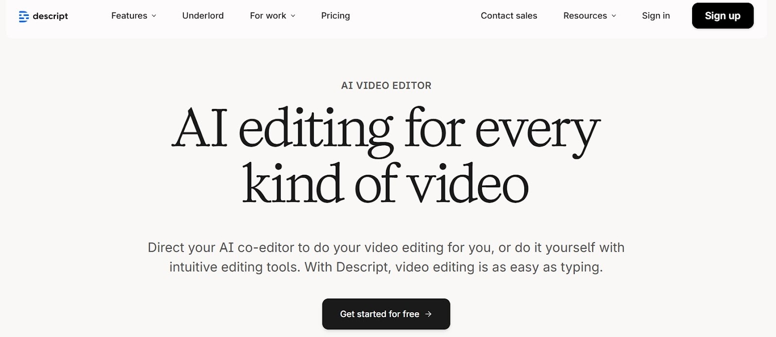 Descript is a transcription tool that feels a bit different from the rest because it doubles as a simple video and audio editor. When you upload a file, it creates a transcript that you can edit like a document, and any changes you make to the text instantly change the audio or video too.